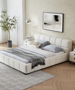 Elevate your bedroom with the Cushy Boucle Fabric Bed – a perfect blend of French creamy elegance and modern minimalism. Designed for spacious interiors. its plush boucle upholstery exudes soft luxury. while the clean lines and low-profile silhouette bring a serene. airy feel to any space. Ideal for those who appreciate a touch of quiet opulence in their everyday living.