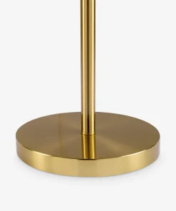 Minimalist lines define the Ellingford floor lamp. The slender stem takes an angular bend. cutting a chic silhouette that makes it the perfect reading lamp next to your sofa or a comfy chair. We love how the brass finish pops against the white shade. offering a versatile addition to modern palettes.